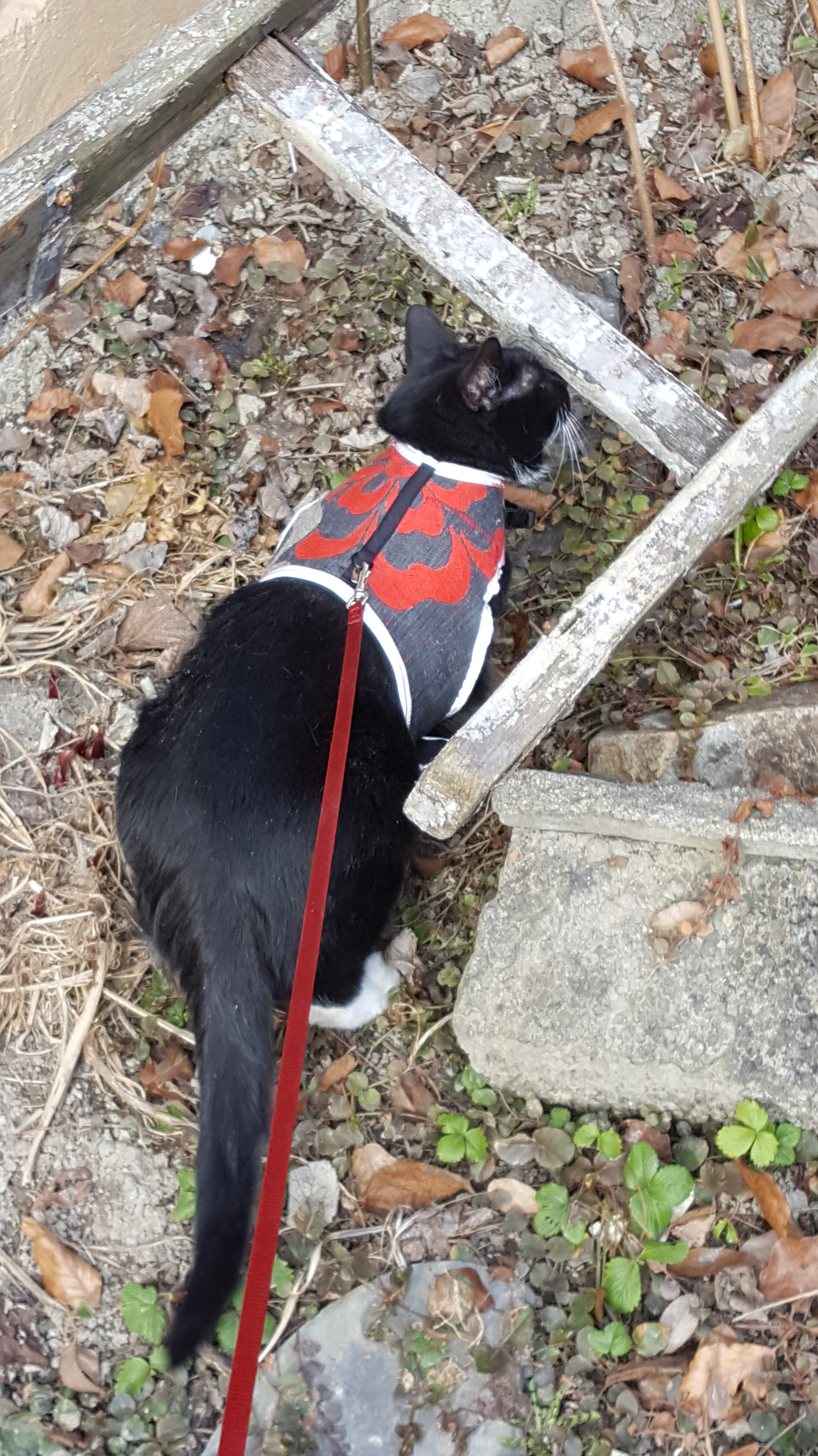 Here is my catgirl on adventure in our garden.
