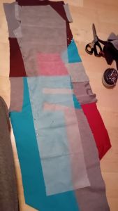 I got inspired from work where the pulpils in 7th grade going to start a upcycling project this week (week 5 of 2024). My udea started three weeks ago and I have used as much time as I have been able to use. Evenings and weekends, when I have been well, sewing together pa5ches to bigger patches. I have got so far now, that I can finally start to cut the pattern 😍🧵✂️.